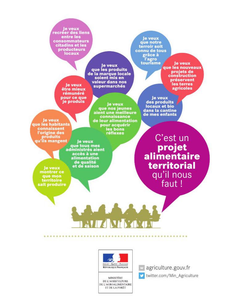 Défini dans la loi d’avenir pour l’agriculture d’octobre 2014, il s'appuie sur un diagnostic partagé faisant un état des lieux de la production agricole locale et du besoin alimentaire exprimé au niveau d’un bassin de vie ou de consommation, aussi bien en termes de consommation individuelle que de restauration collective.